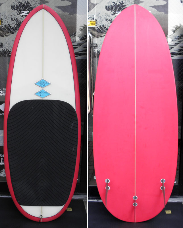 三本目はニーボード。活さんのお兄さんシェイプのトライフィン。グッドコンディションでパッド付の5’2”。ニーボード面白いですよ。