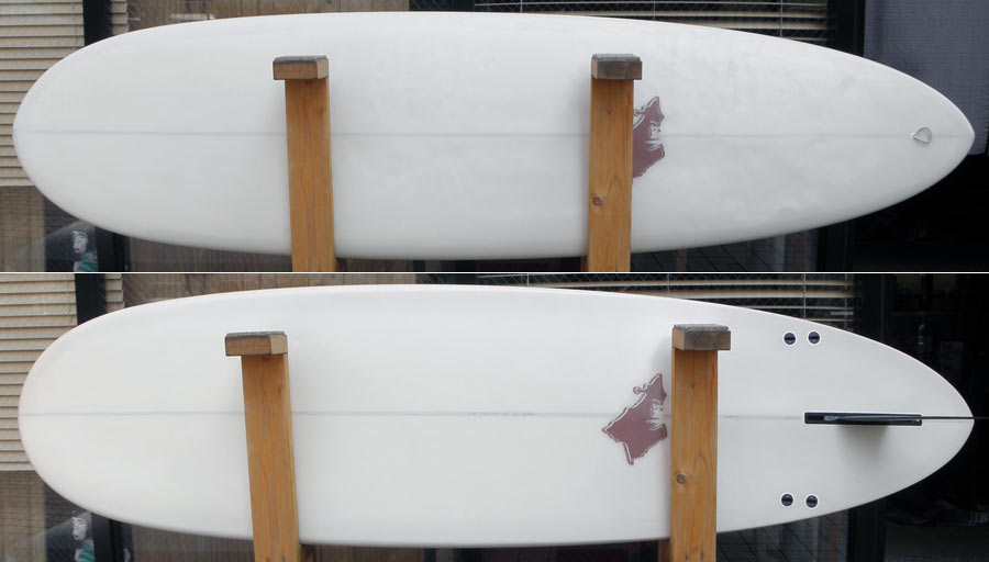 ハワイのボードです。7’0”のミニロング。マニューバ系のロングボードをそのまま小さく、ノーズコンケーブもちゃんと入っています。遊べそうなボードです。