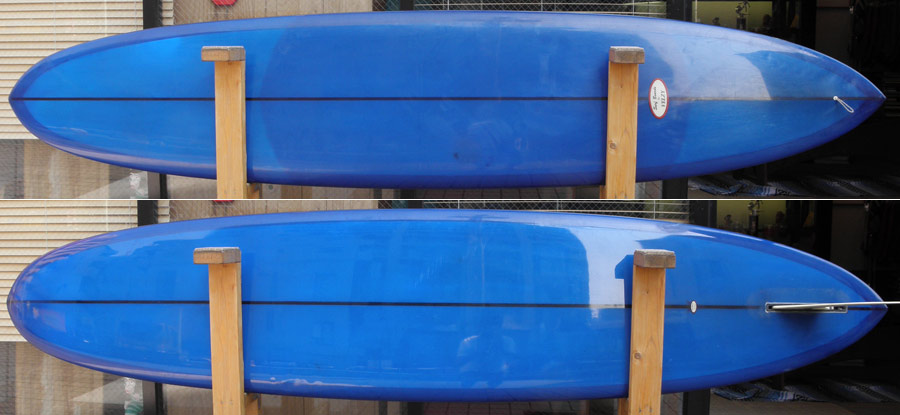 プリモは、7フィート代で作り始めたモデルですが、下は6フィート8インチから8フィート代、そして9フィートオーバーのロングボードのサイズで作ります。もちろんシングルフィンです。