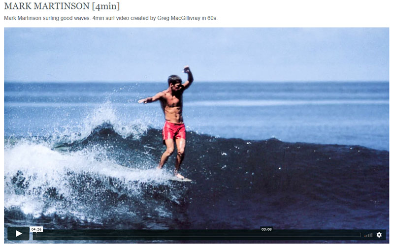 マーク・マーティンソンは60年代のロングボードの映像に登場するサーファーの中で、好きなサーファーのひとりです。理由は動画を見ていただければ分かると思います。パワフルですがスムースで、スタイリッシュ。