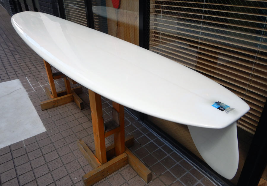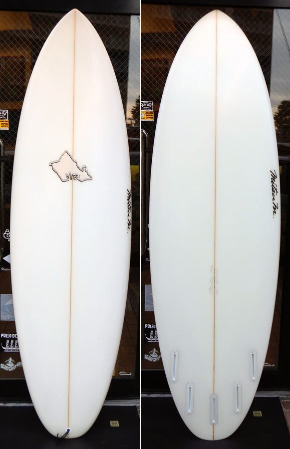 ハワイのMITSU SURFBOARDSのユーズドボードが入荷しました。ワイドなアウトラインはゆるい波でも走ってくれそうです。