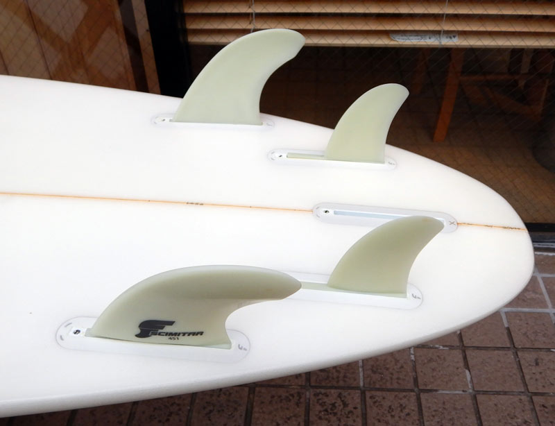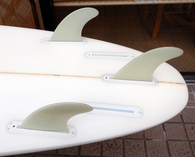 フィンはフューチャーの5プラグで、クアッド、トライ両方のフィンが付属します。