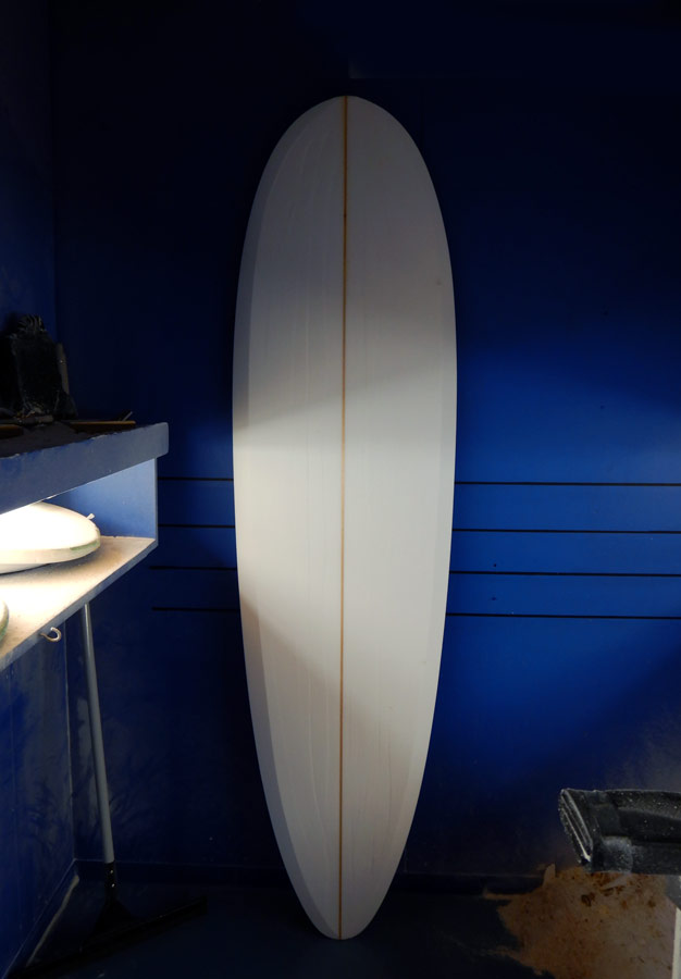 いろいろな角度からチェックしていると、あらためてロングボードの造形の美しさに見とれてしまいます。