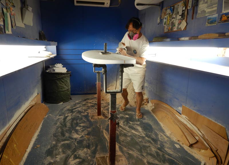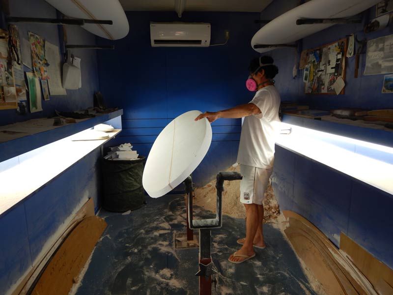 ショップのオープンは2001年。それ以来、ロングボードをベースに、フィッシュ、ボンザー、シングルフィン、ニーボード、パイポとさまざまな種類のサーフボードを作り、試してきました。