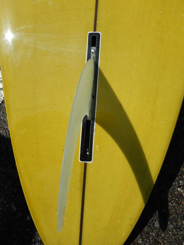 新しいシングルフィン、気に入りました。かなり面白いボードです。フィンの位置と形状はまだ試してみる余地ありです。次は海の中でフィンを位置を変えられるようにして試してみることにします。