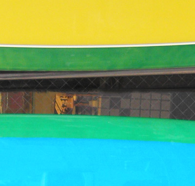 レールで違うカラーを重ねて、違う色を出すこともできます。色を混ぜるのと同じ理屈です。たとえば、ボトム側から黄色のティント、デッキ側から青色のティントでラミネートすると…黄色と青が重なるレールには緑色が出てくることになります。