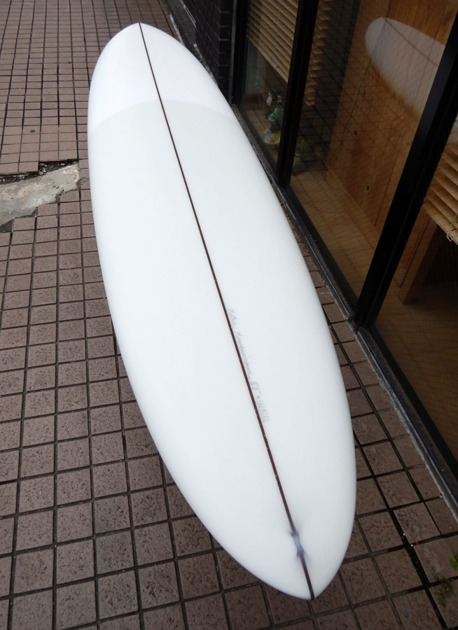 プリモ 6’8”。コシ波から楽しめるシングルフィンは、サイズがあがったらもっと楽しめます。