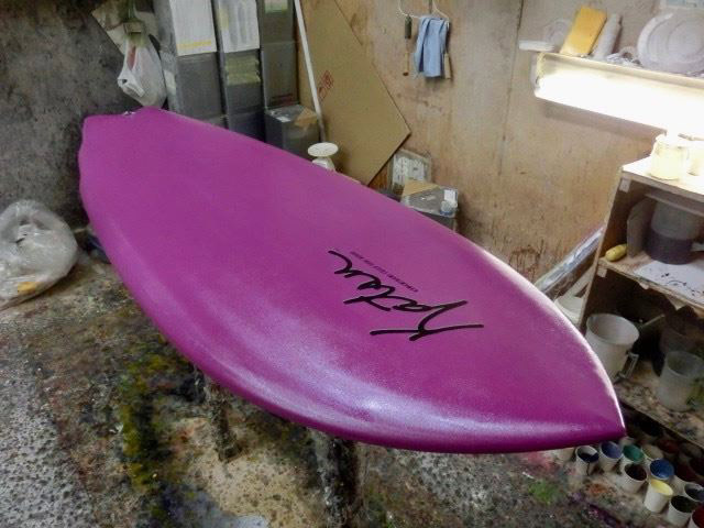 活さんは、3ストリンガーのBONITAフィッシュをシェイプ中。クラシックですね~。こんなのも出来ます。