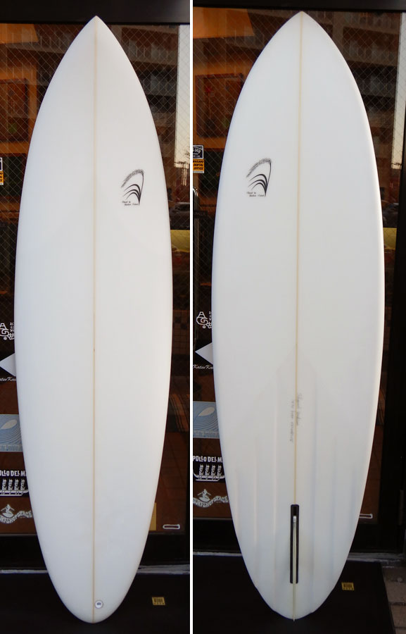 その前の2002年にサーフボードエボリューションが自分の中で始まって、1968~69年ごろのVEEボトムをベースにした、6’10”のシングルフィンを作ってもらって乗り始めていました。それまでずーっとロングボードでしたから、初めて6’10”に乗ったときのことは今でも覚えています(当時のメルマガでも書いてます)上のマチャドのMSFも店で取り扱ってました。