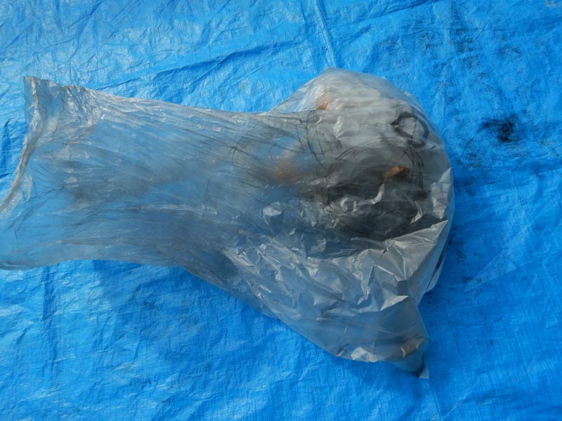 ススで真っ黒になってしまうので、写真はありません。ゴミ袋の中は落としたスス。昨シーズンで、茶わん一杯分くらい。上手に燃やすと、ススも少ないのです。この量ならまあ合格でしょう。