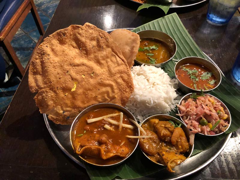 もうひとつは、ミールス。何種類かのカレーをバナナの葉っぱに並べた南インドのカレープレート。