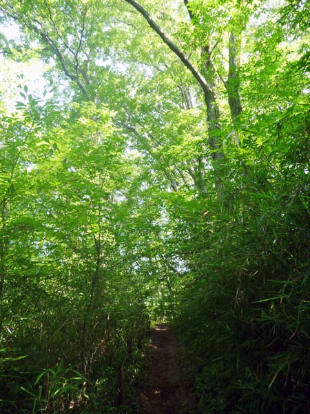 しばらく波が立ちそうな兆候は無さそうなので、今朝は心おきなくランニング。トレイルの登り下りをゆっくり走ります。ミズナラやカシの雑木林なので冬場は枝だけの林になりますが、今の季節は生い茂った樹々が日陰と目に優しい緑をトレイルに提供してくれます。