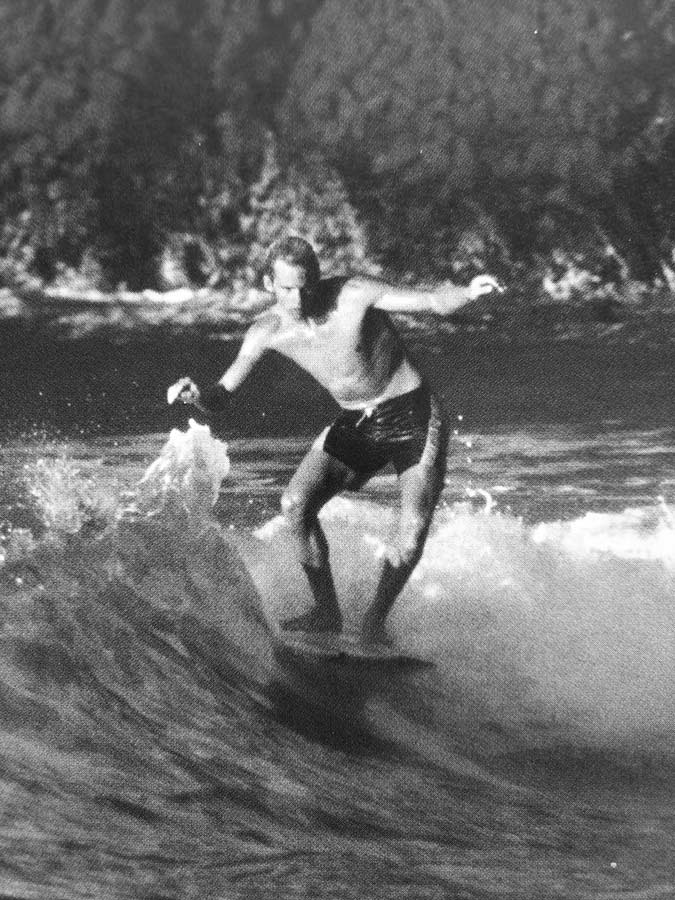 これは69年。ボードは7’6”。同じ長さで二種類のボードに乗っているのが分かりますか?ロングボードじゃなくてミッドレングスですが、こういう乗り方もかっこいいです。