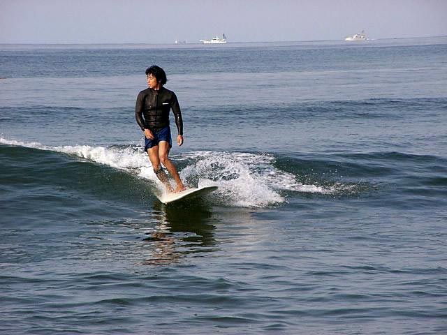 ボードの前に乗り、後ろへ戻り、レールが入るように踏み込む、力を抜く、何もしないのは波のカールにロックされて勝手にボードが走っているとき…かな。そうやって長くて大きなボードのあちこちに乗って、波とのバランスを取り合って波を最後まで乗り切るのが、ロングボードだと思います。