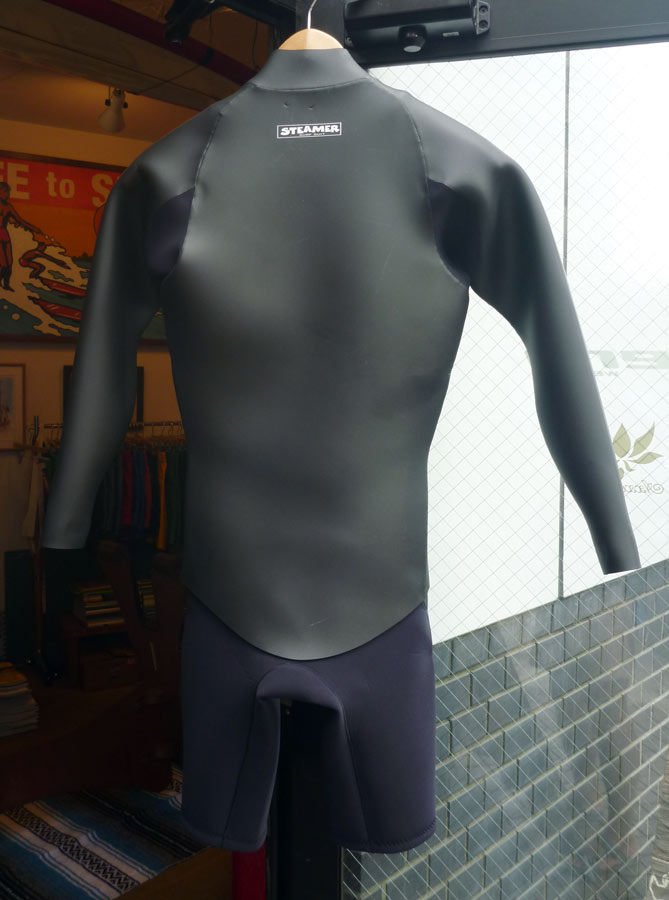 オーダーいただいたウェットスーツができあがりました。STEAMERのふるふる手触りのDTラバーです。ショートジョンとジャケットのセットアップですが、なかなか使いまわしがいい組み合わせです。