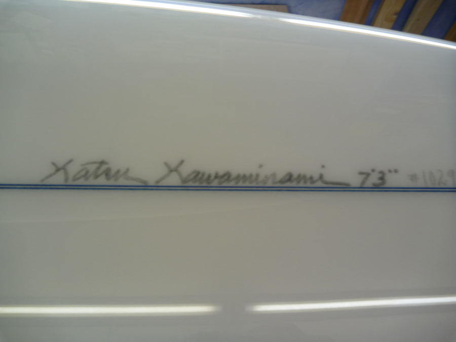 ブルーのボードより40年も昔に活さんがシェイプしたニーボードです。VEEノーズから深いコンケーブとレールエッジ。カツカワミナミサーフボード、歴史あります。