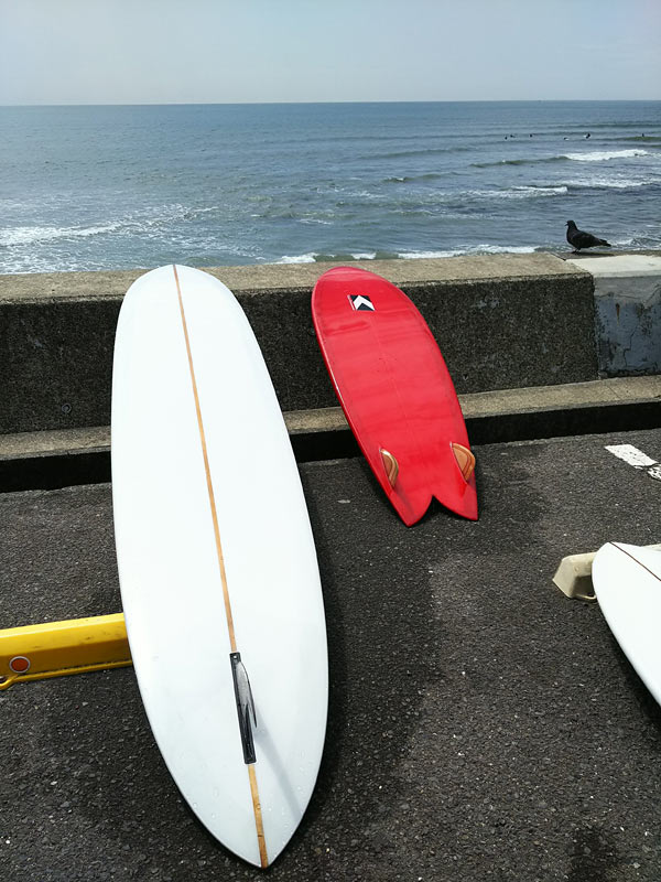ずっとロングボードをやっていたので、6.0はとても小さく感じましたがやっぱりフィッシュはフレンドリーなんだと思います。少しやっていると楽しくなってきて、そこら辺から活さんのMINIなど(やっぱりシングルフィンでした)、ボードがだんだんと短くなって行って、全くロングボードに乗らなくなった時期もあったくらいです。