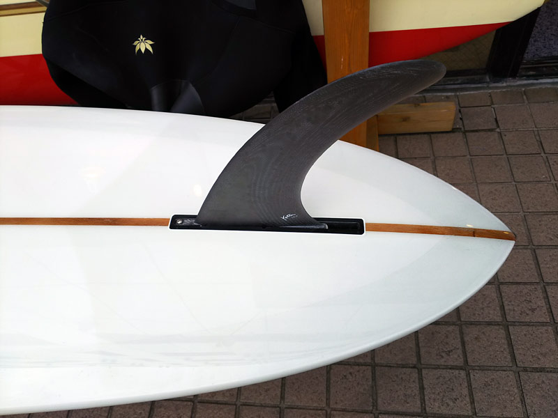 それで変わりました。フィンの大きさと言うか、フィンの存在感はそれほど感じませんが効いてくれている感触です。テールが逃げるような感じは無くなりました。コントロールはスムースです。