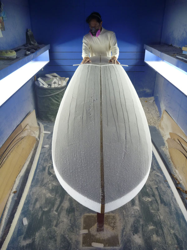 ショップのオープンは2001年。それ以来、ロングボードをベースに、フィッシュ、ボンザー、シングルフィン、ニーボード、パイポとさまざまな種類のサーフボードを作り、試してきました。