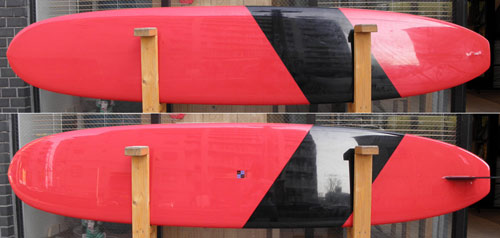 そう言えば以前、9.6で同じラウンドピンテールのクリステンソンのC-HAGに乗っていたときと同じ感じかもしれません、というのはたった今思いついたこと。C-HAGで使っていたのは、9.75のグリノウフィン。ロングにこのフィンは好きじゃないって、昔書いたと思います。思い出しました。