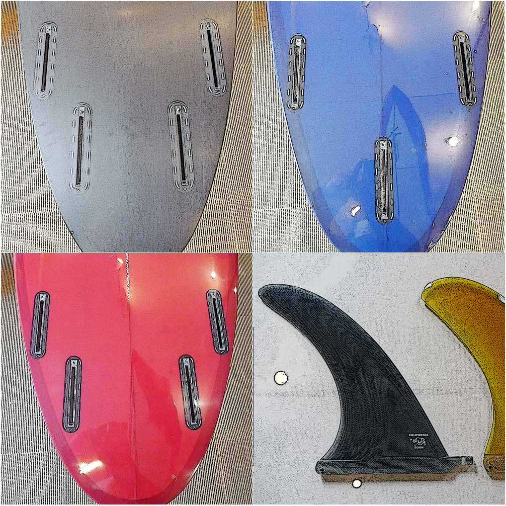 自分のシングルフィン(9.9 グライダー)をふくめて、フィンを考えています。トライフィン、クアッド、BOXの追加などいろんな依頼をいただいて、突然のフィンのオンパレードです。