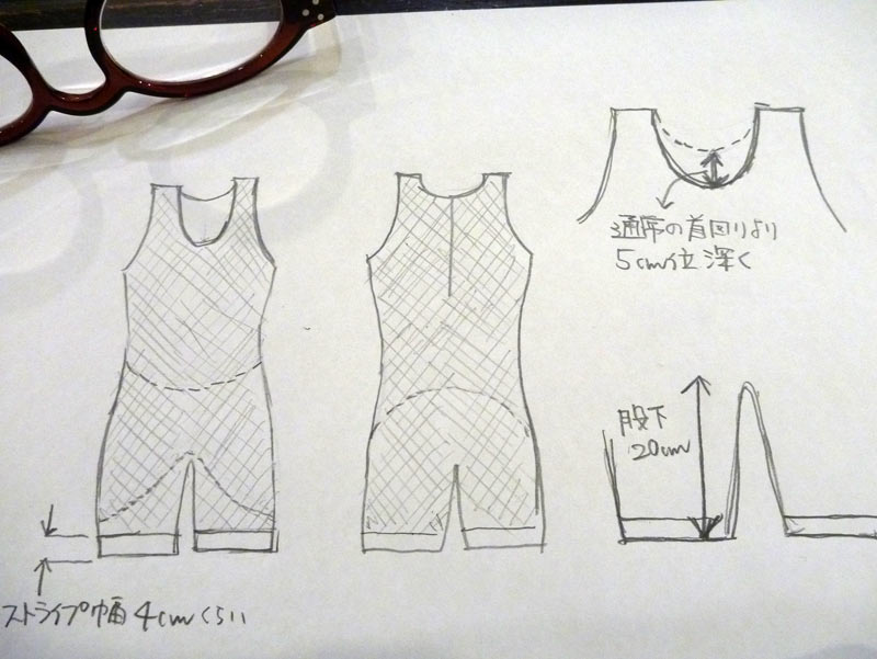 デザイナーは夏のお楽しみ用に、こんなショートジョンを作ってみようと考えています。デザイナーは私で、着るのも私。