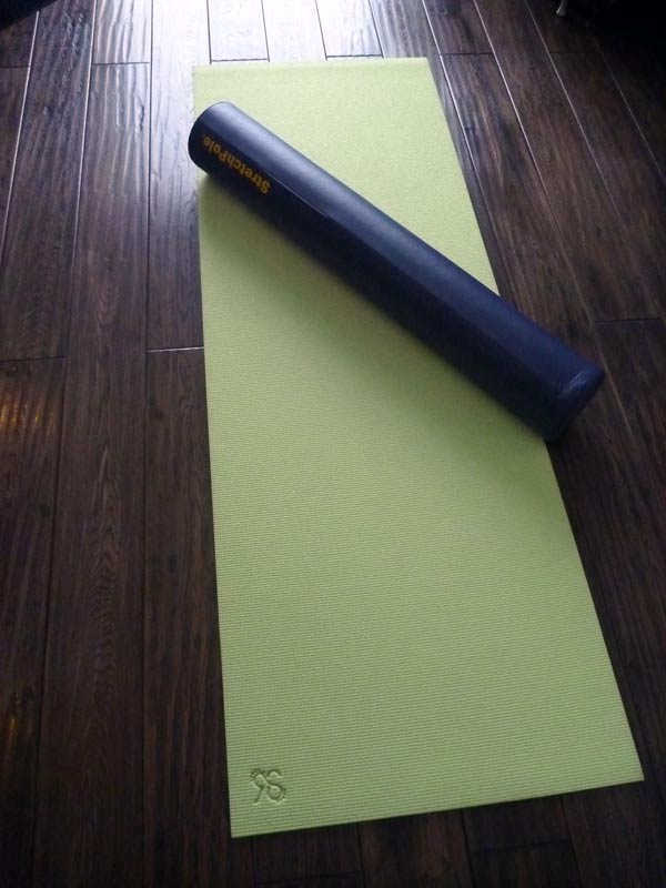ストレッチだけではどうしようもなくなっている箇所のひとつですが、そのフクラハギとスネをポールの上に乗せて、ゆっくりゆっくりと動かしますがこれが痛くて気持ちがいい。