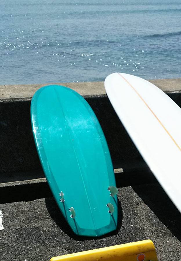 カツさんに、70年代にご自分で乗っていて調子良かったシングルフィンを思い出して作ってくださいというオーダーで作っていただいたボード。思い出すとオンショア風波でも台風の波でも楽しめたボードでした。