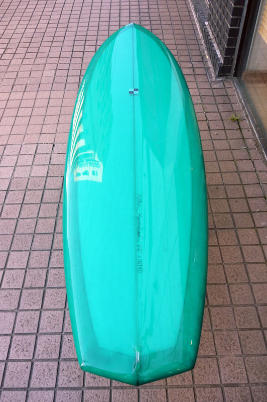 今日は先日のブログで、9’9”と一緒に写っていた6’2”のお話し。左側のターコイズグリーンのクアッドです。