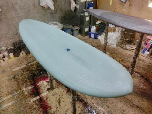 BONITA FISHも制作中です。サイズは5’8”。ずいぶん短く感じるかもしれませんが、私でさえ(笑)このサイズで乗れるフレンドリーなフィッシュです。
