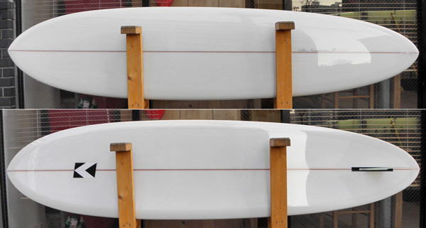 8’4”。昨年の夏に、久しぶりに8フィートちょっとのシングルフィンに乗りたくなって、作っていただいた長さですが、期待をはるかに超えてすっかり気に入ってしまったサイズです。個人的にロンガーさんにぜーひ乗ってもらいたいシングルフィンです。