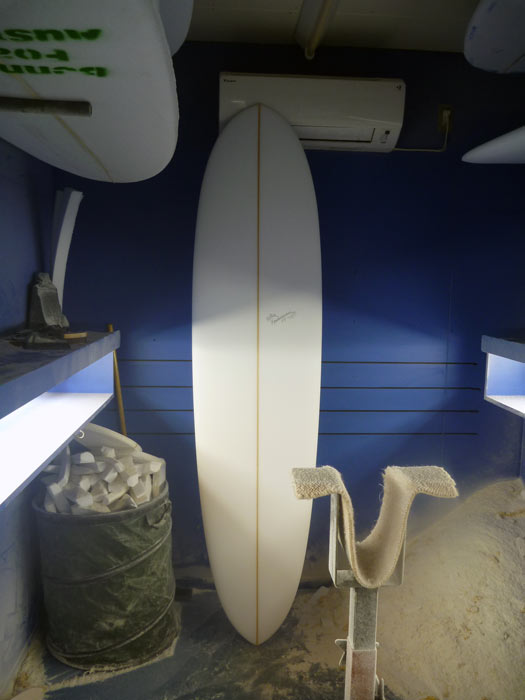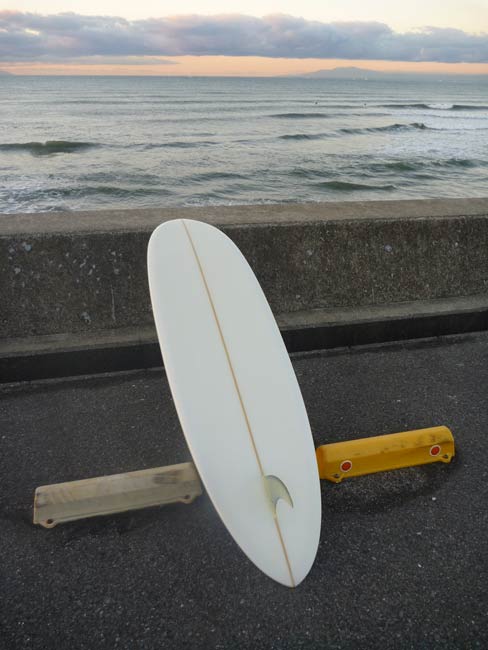 昨年作ったのが面白くて、すっかり気に入ってしまったFLAT + Dフィンのロングボード。二本目をホームページにアップいたしました。白のピグメントの9.6です。