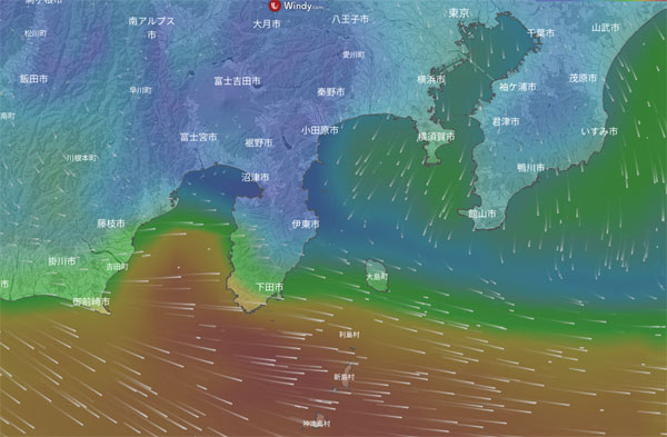 水曜日の朝の予想図。今吹いている西風が沿岸で北(オフ)に変わって、波も整いそうですがオフに変わるのが火曜の夕方あたりなのでロングボード向きか。いずれにしても風次第ですが、寒そうなのは確かです。