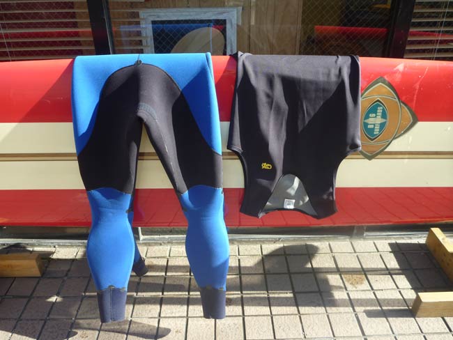 という訳で、エアスキンのショートジョン、品切れサイズ入荷しています。これ一枚追加すれば、薄いウェットでも大丈夫~というようには行きませんが、暖かいのは本当です。着替えのときは寒くありません。風も水も通しませんから。それは多いに実感しました。