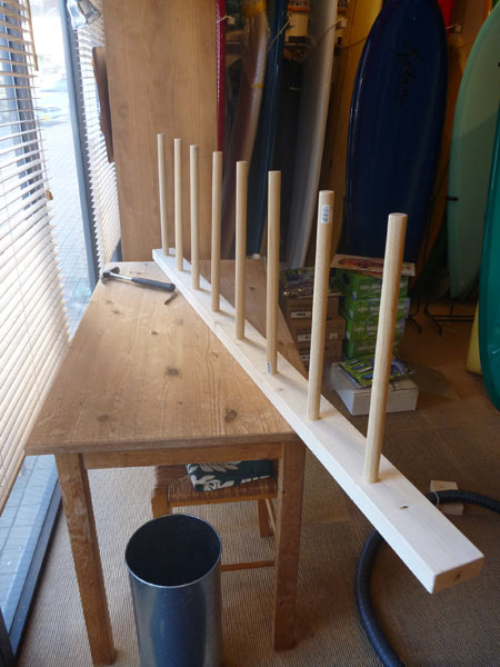 今日は朝からボードラック製作。店内プチ改装です。