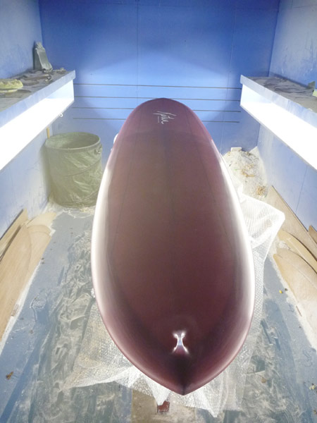 今日、午前中はシェイプルームへ。オーダーいただいた、8’4”のTIKIが完成しておりました。