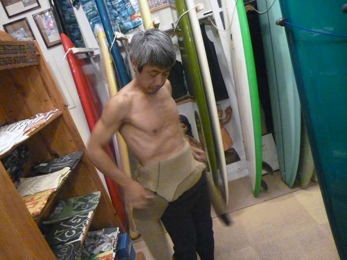 個人的な話ですが、私が気に入っていたMINIは、ずいぶん昔(2004年です)に作っていただいた、VEEが長めに入ったシングルフィンのMINIです。上のコンケーブとは逆の形状。ペコペコになるまで乗っていました。昨日、ユーズドのパパジョーのボトムを見ていて思い出しました。