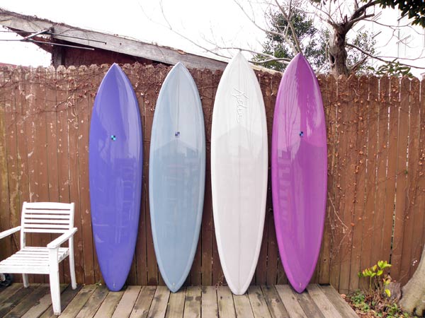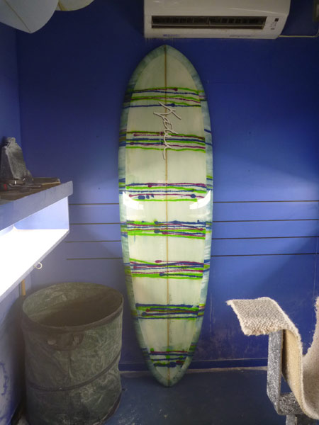 ショップのオープンは2001年。それ以来、ロングボードをベースに、フィッシュ、ボンザー、シングルフィン、ニーボード、パイポとさまざまな種類のサーフボードを作り、試してきました。