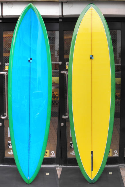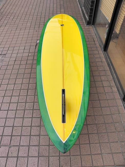 7’2”のMINI GUNが出来上がりました。いろいろなコンディションで使えそうなシングルフィン。それにしても速そうです(MINI GUNについてはこちらをご覧ください)