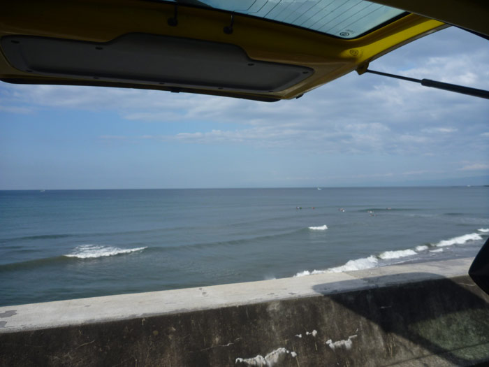 定休日の朝。前日の波はすっかりサイズダウンしてしまっていますが、そんなことはほとんど気になりません。風はオフショア、ロングボードなら十分楽しめます。