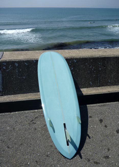 もう一本は、不動の人気のMIN 6’8”。またシングルフィンですいません。シングルばかりなのは、あくまでも個人的趣味で、デフォルトはトライフィンです。トライ、オーダーでお作りします。