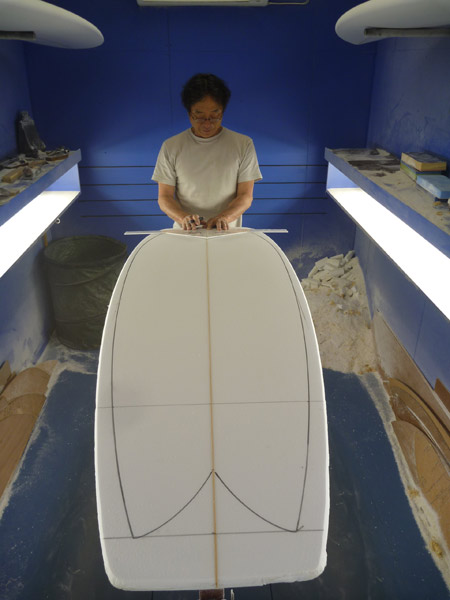 ショップのオープンは2001年。それ以来、ロングボードをベースに、フィッシュ、ボンザー、シングルフィン、ニーボード、パイポとさまざまな種類のサーフボードを作り、試してきました。