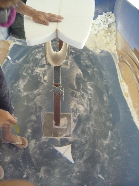 新しいDフィンはピヴォットターンを意識して、立ち気味な形状にしてみたいと思っています。フィンの位置はボードの一番後ろでしょう。
