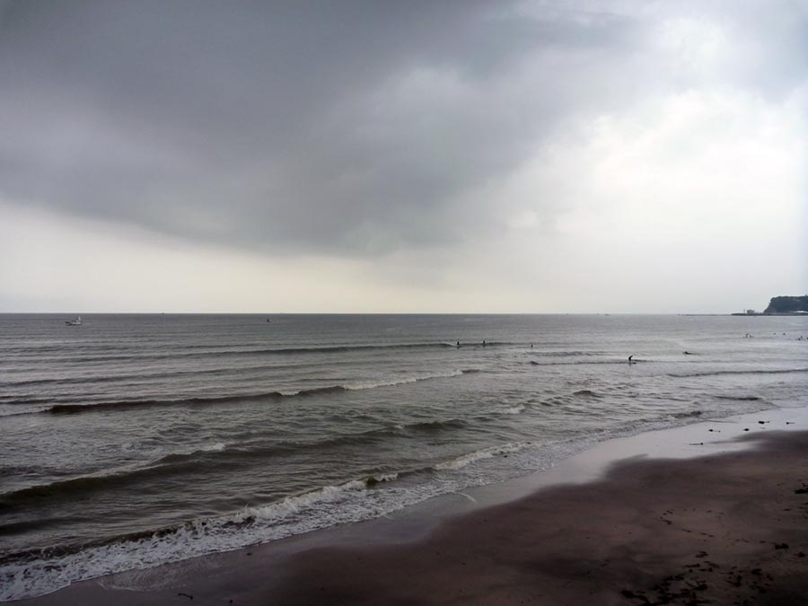 後ろに見えているのは江の島。おそらく鵠沼~辻堂あたり。