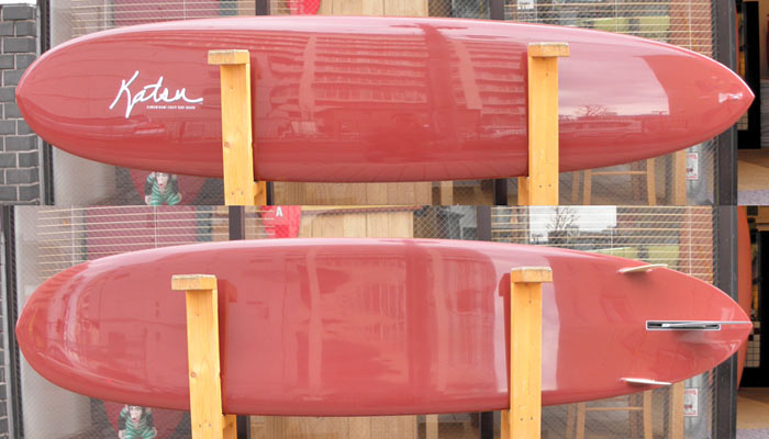 クラシックボードというと、なんでもノーズコンケーブが入っているものと思われている向きもあるらしいですが、コンケーブが無いロングボードが滑る感触は気持ちいいものです。滑り出しも気持ちいいのです。
