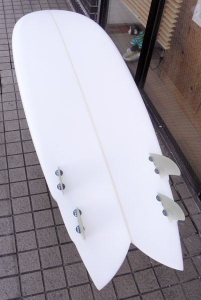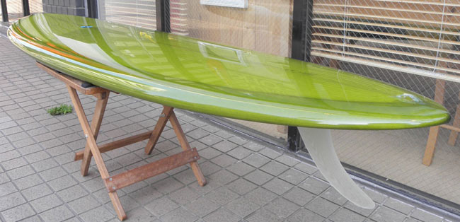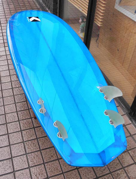 私が乗っているのとほぼ同じに作った、3フィンのボンザーのシェイプが出来上がりました。速い波にはばっちりです。ボードの動きは大きなボンザーフィンの重そうなイメージを全く裏切る軽さです。お楽しみに。