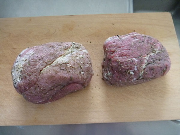 まずは下ごしらえ。多めの塩とハーブとスパイスを擦り込んで、冷蔵庫に三晩放置します。かたまり肉を相手にするときには急いではいけないのです。
