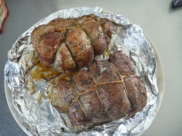 それで、これが三日目の朝の豚モモ。調理に入る1時間前には冷蔵庫から出して、常温に戻しておきます。