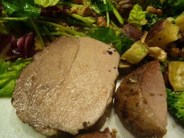 ちょっと火を通し過ぎたかな?それでも薄~いピンク色で、フルフル、押すと肉汁が沁みだしてきます。