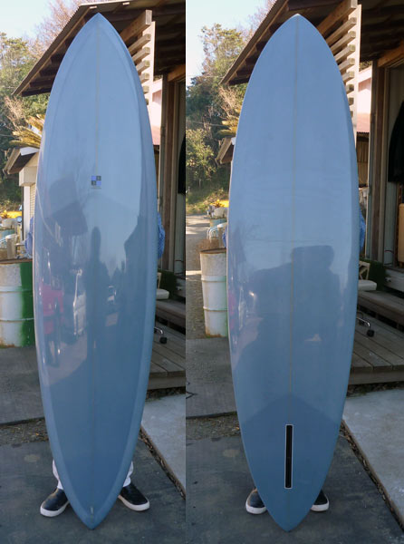 私は同じ形で今はボンザーですが、シングルで乗っていたときも調子良かったのです。このシングルフィン、やっぱりいいです。また作っていただくことにします。